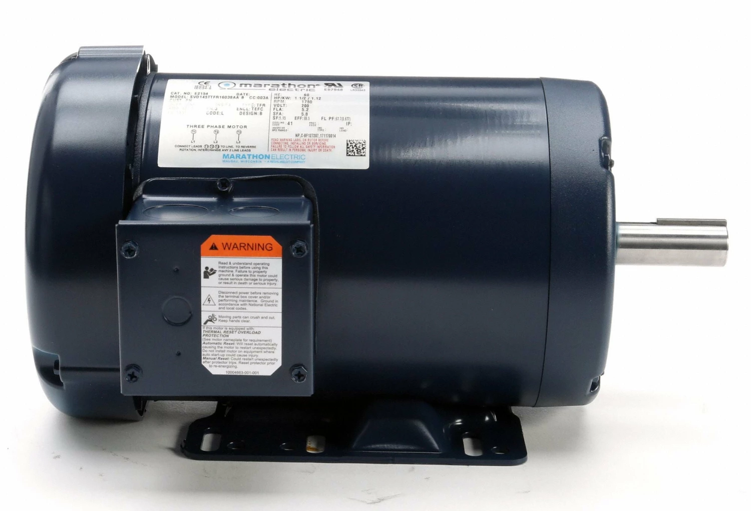Marathon Motors 1 1/2 HP, General Purpose Motor, 3-Phase, 1750 Nameplate RPM, 200 Voltage, 145T Frame – 145TTFR16038