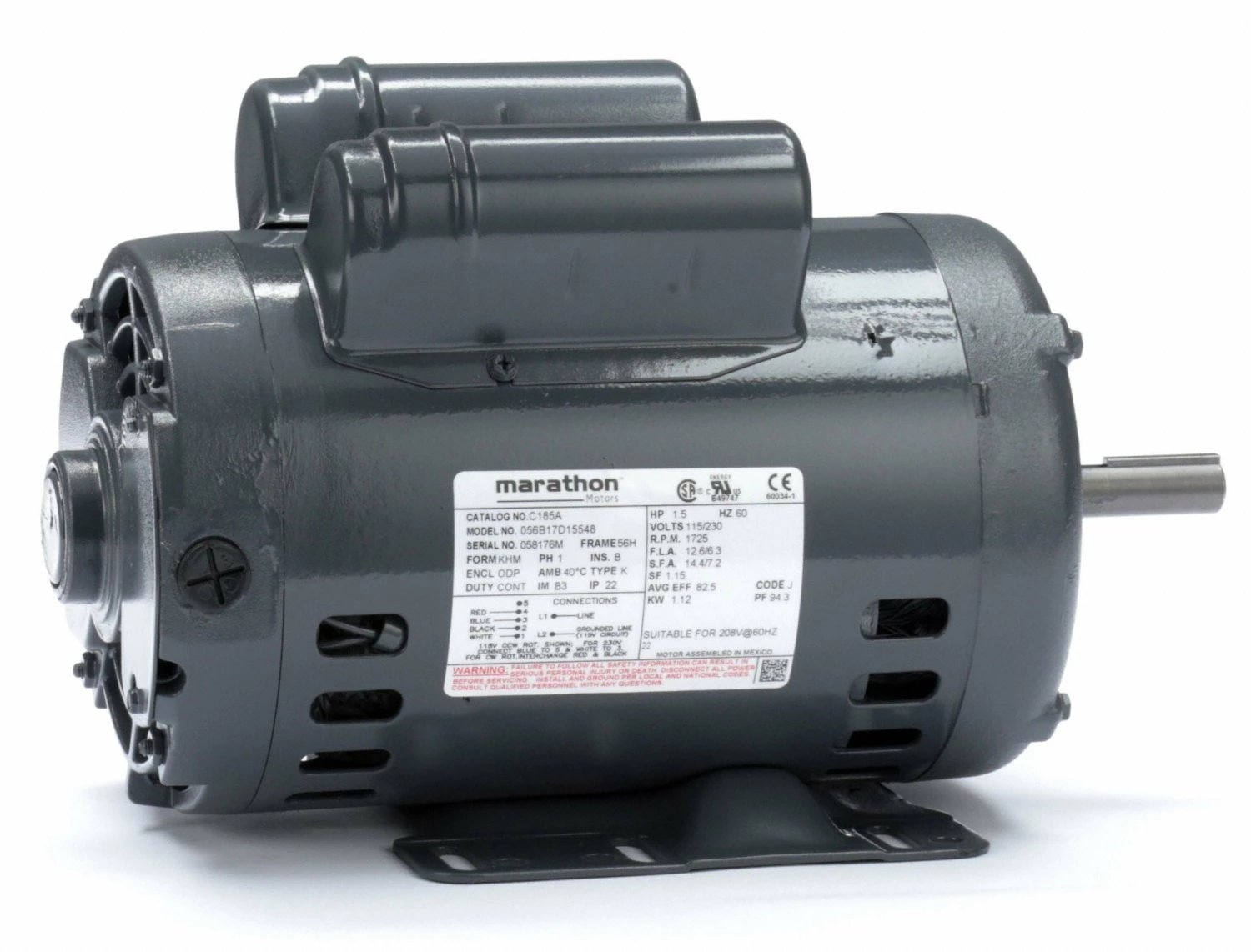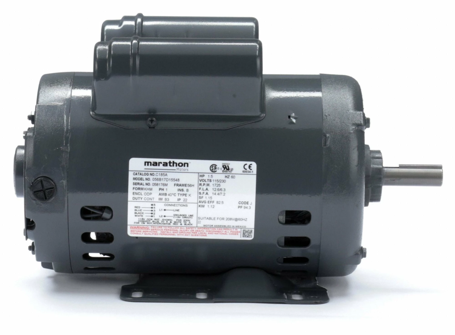 Marathon Motors 1 1/2 HP, General Purpose Motor, Capacitor-Start/Run, 1725 Nameplate RPM, 115/230 Voltage – 056B17D15548