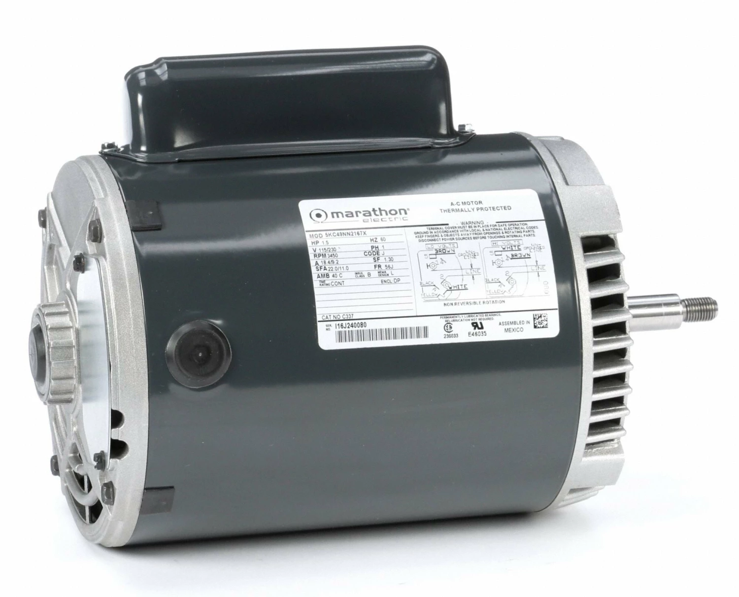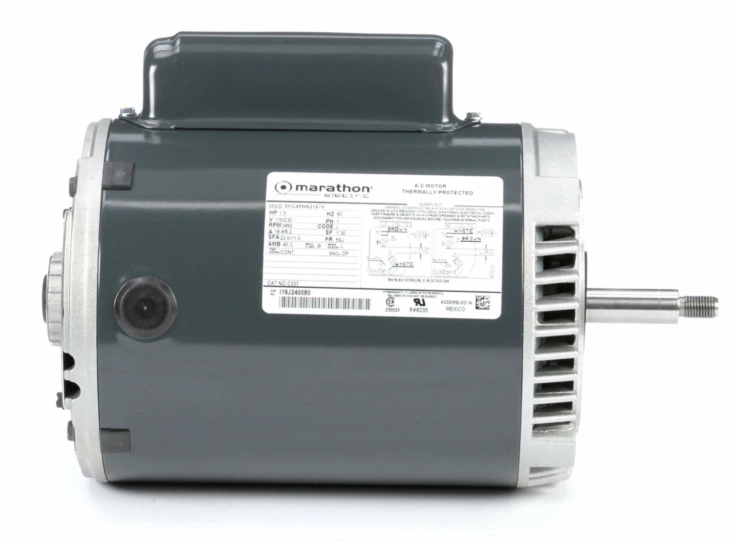 Marathon Motors 1 1/2 HP Jet Pump Motor, Capacitor-Start, 3450 Nameplate RPM, 115/230 Voltage, 56J Frame – 5KC49NN2167X