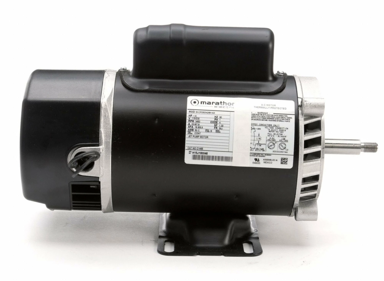 Marathon Motors 1 1/2 HP Jet Pump Motor, Capacitor-Start, 3450 Nameplate RPM, 115/230 Voltage, 56J Frame – 5KCR39SN2891X