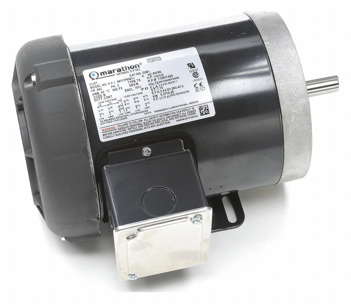 Marathon Motors 1/2 HP, General Purpose Motor, 3-Phase, 1725 Nameplate RPM, 208-230/460 Voltage, 56C Frame – 056T17F5321