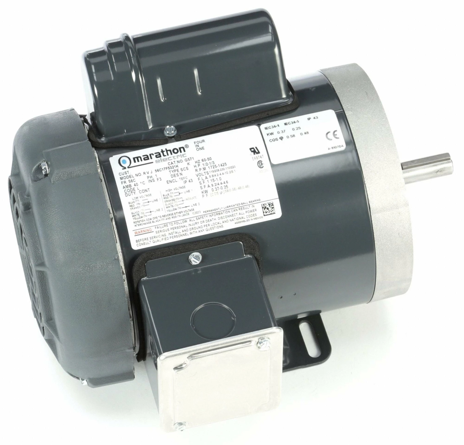 Marathon Motors 1/2 HP, General Purpose Motor, Capacitor-Start, 1725 Nameplate RPM, 115/208-230 Voltage – 056C17F5321