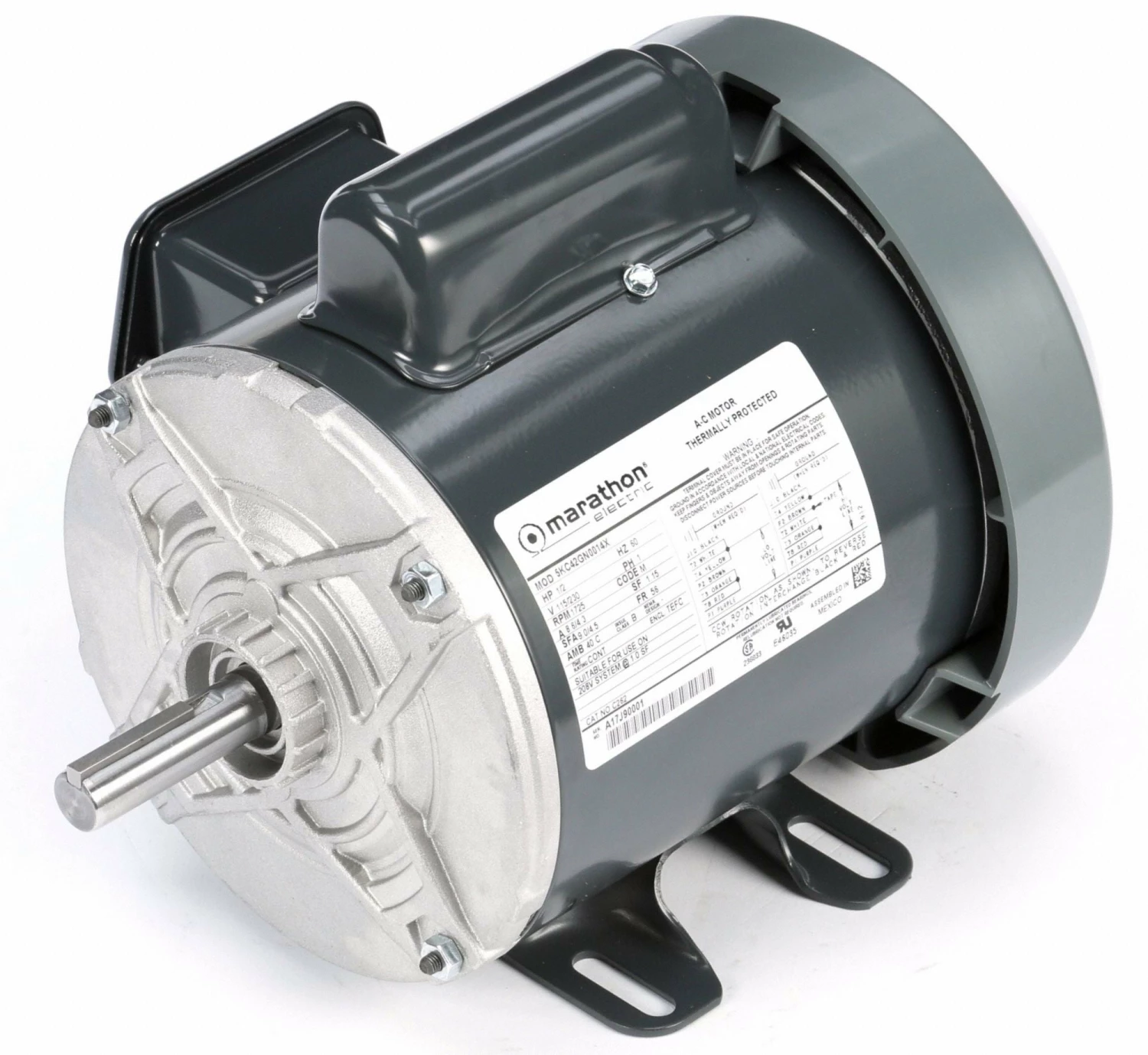 Marathon Motors 1/2 HP, General Purpose Motor, Capacitor-Start, 1725 Nameplate RPM, 115/230 Voltage, 56 Frame – 5KC42GN0014X