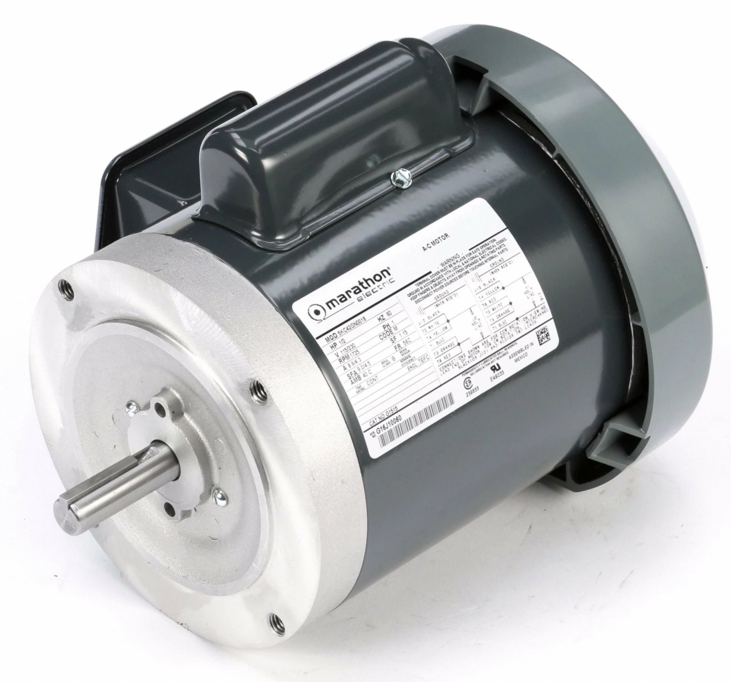 Marathon Motors 1/2 HP, General Purpose Motor, Capacitor-Start, 1725 Nameplate RPM, 115/230 Voltage, 56C Frame – 5KC42GN0018