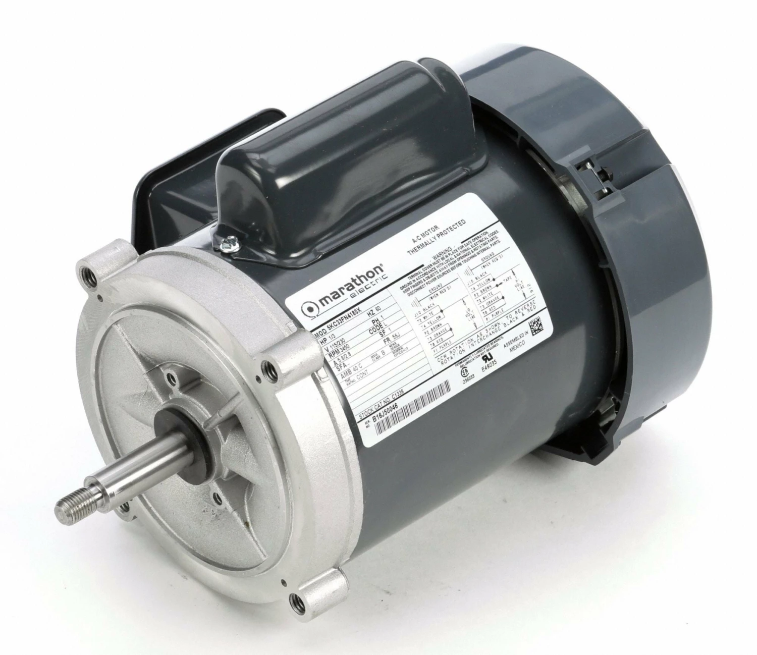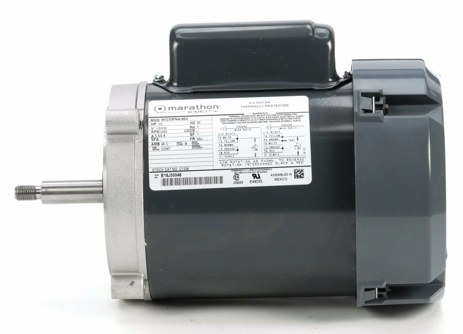 Marathon Motors 1/3 HP Jet Pump Motor, Capacitor-Start, 3450 Nameplate RPM, 115/230 Voltage, 56J Frame – 5KC33FN4180X