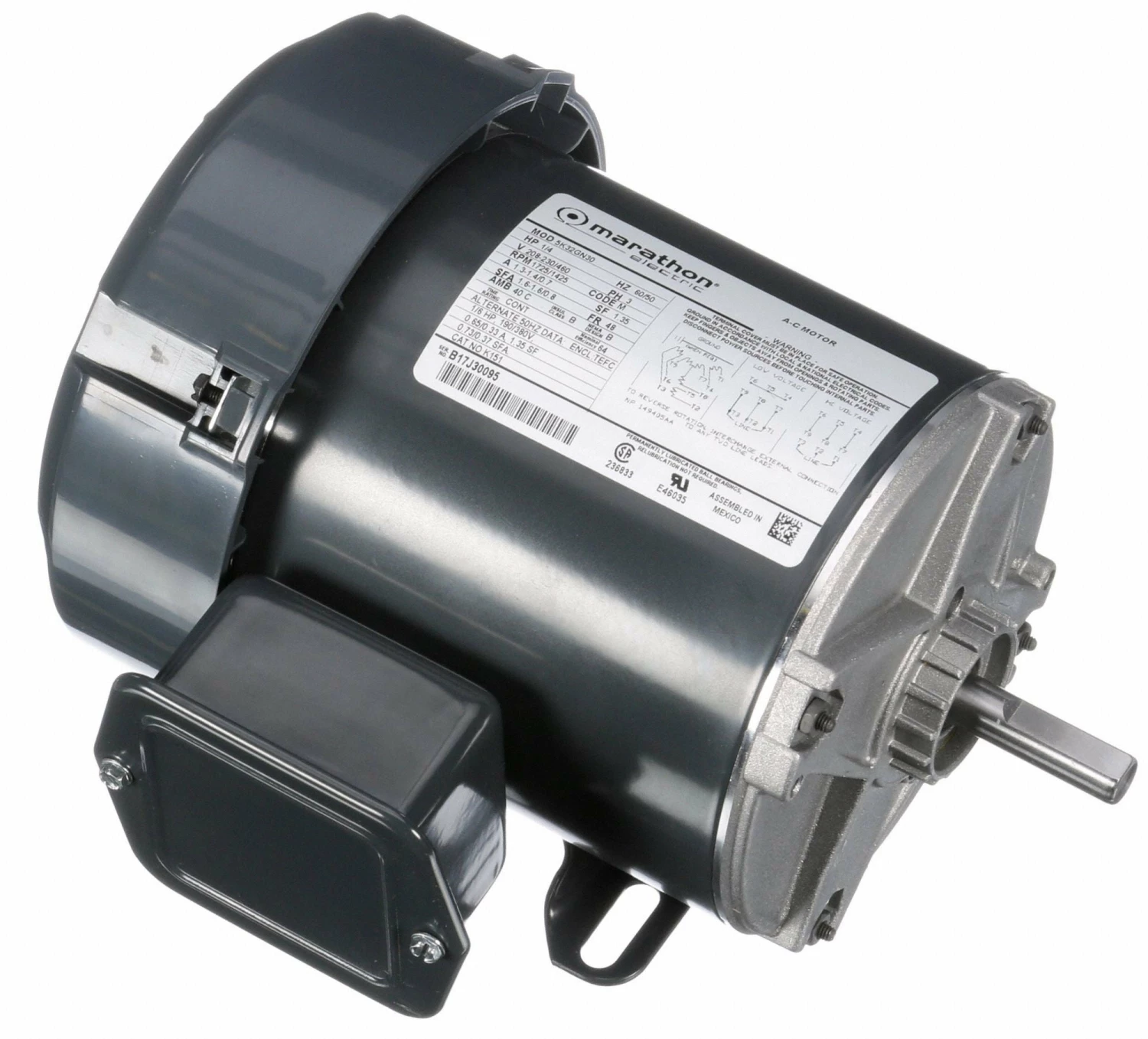 Marathon Motors 1/4 HP, General Purpose Motor, 3-Phase, 1725 Nameplate RPM, 208-230/460 Voltage, 48 Frame – 5K32GN30