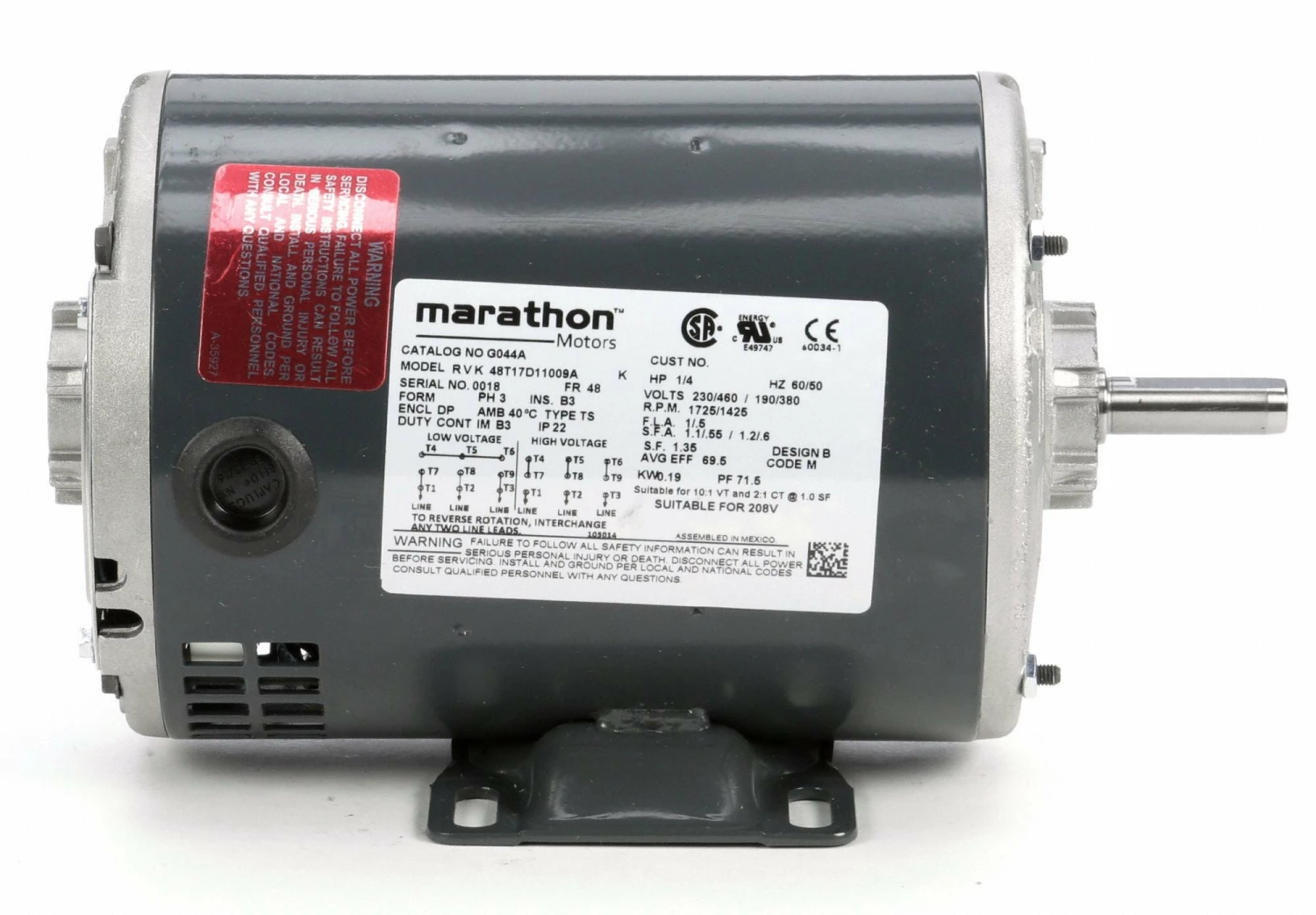 Marathon Motors 1/4 HP, General Purpose Motor, 3-Phase, 1725 Nameplate RPM, 230/460 Voltage, 48 Frame – 048T17D11009
