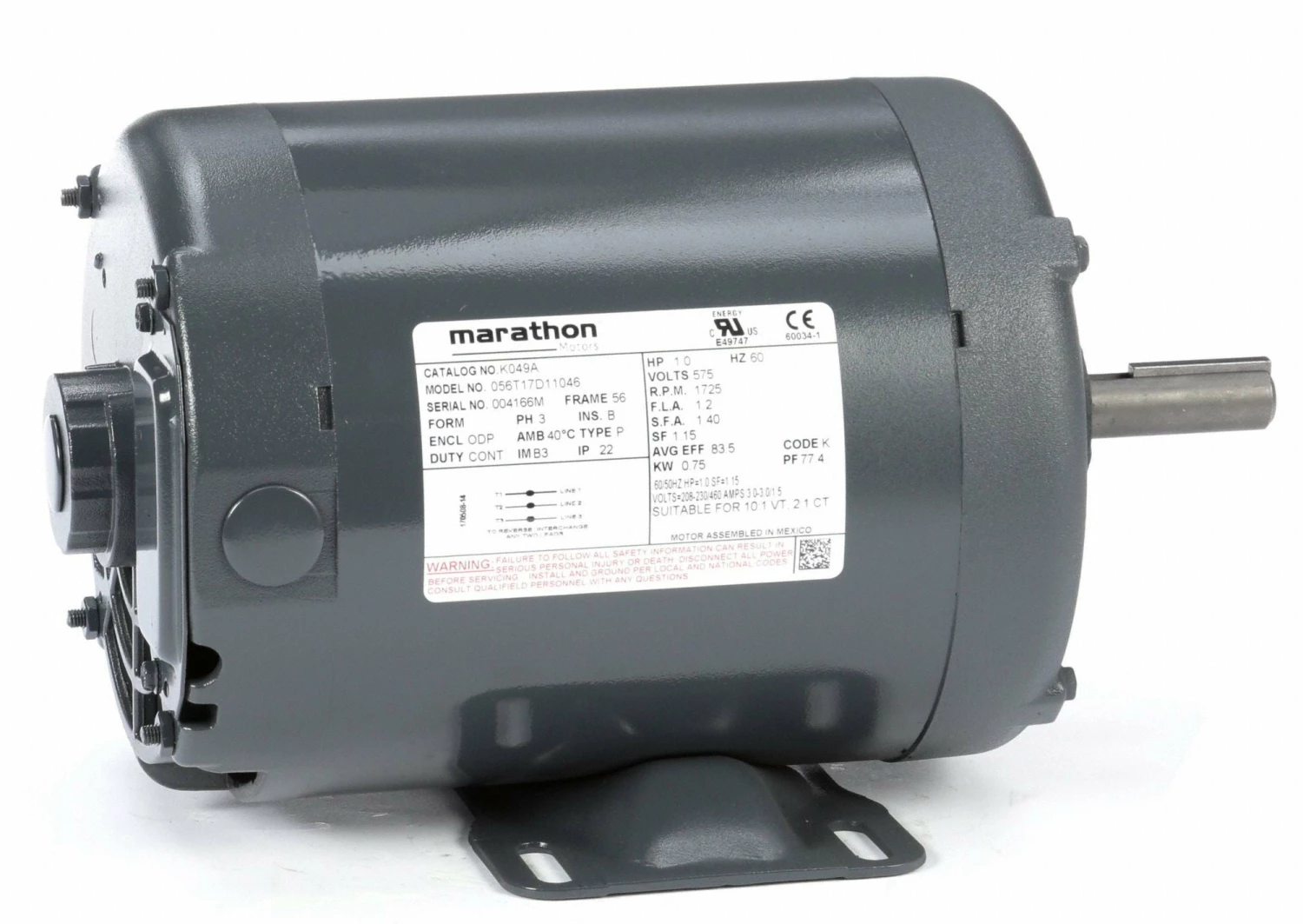 Marathon Motors 1 HP, General Purpose Motor, 3-Phase, 1725 Nameplate RPM, 575 Voltage, 56 Frame – 056T17D11046