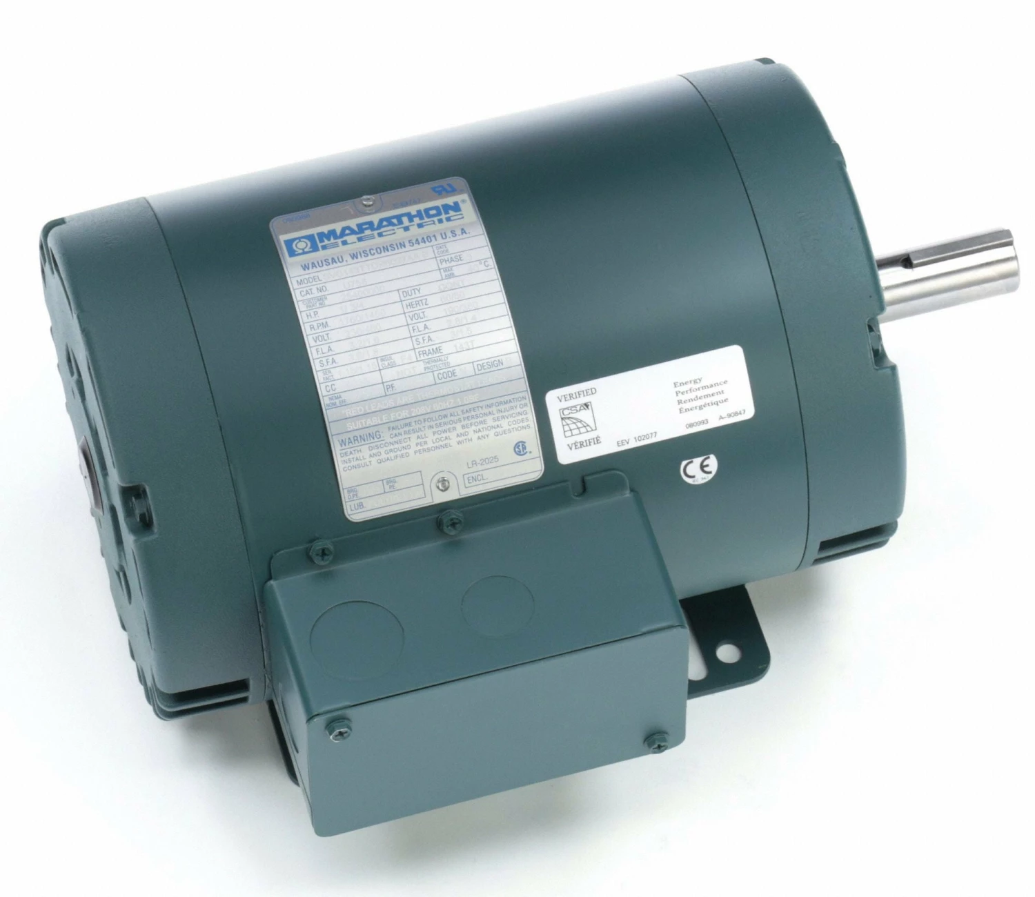 Marathon Motors 1 HP, General Purpose Motor, 3-Phase, 1760 Nameplate RPM, 230/460 Voltage, 143T Frame – 143TTDR6027