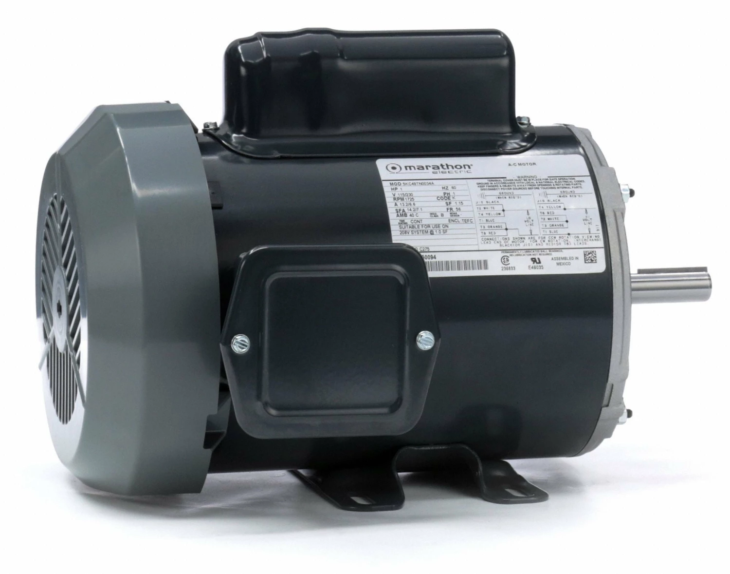 Marathon Motors 1 HP, General Purpose Motor, Capacitor-Start, 1725 Nameplate RPM, 115/230 Voltage, 56 Frame – 5KC49TN0034
