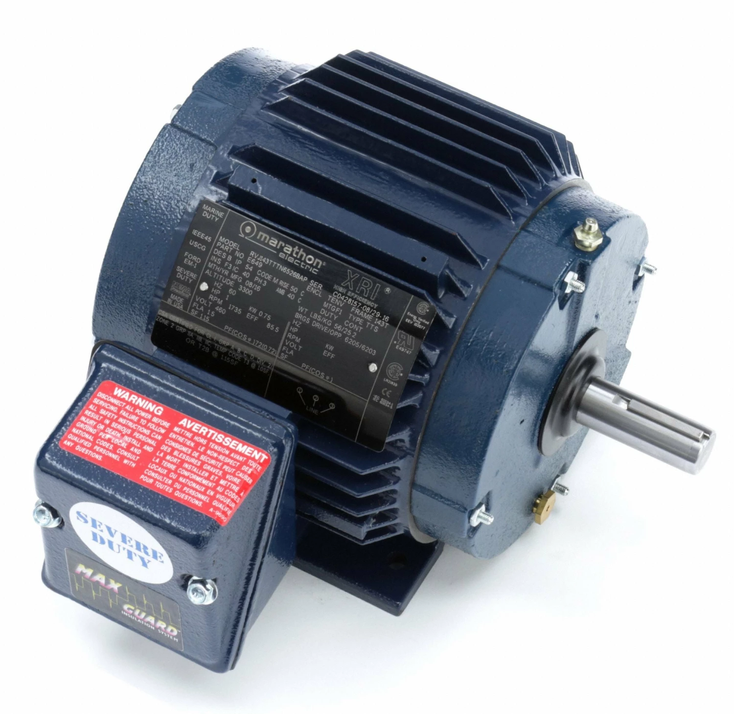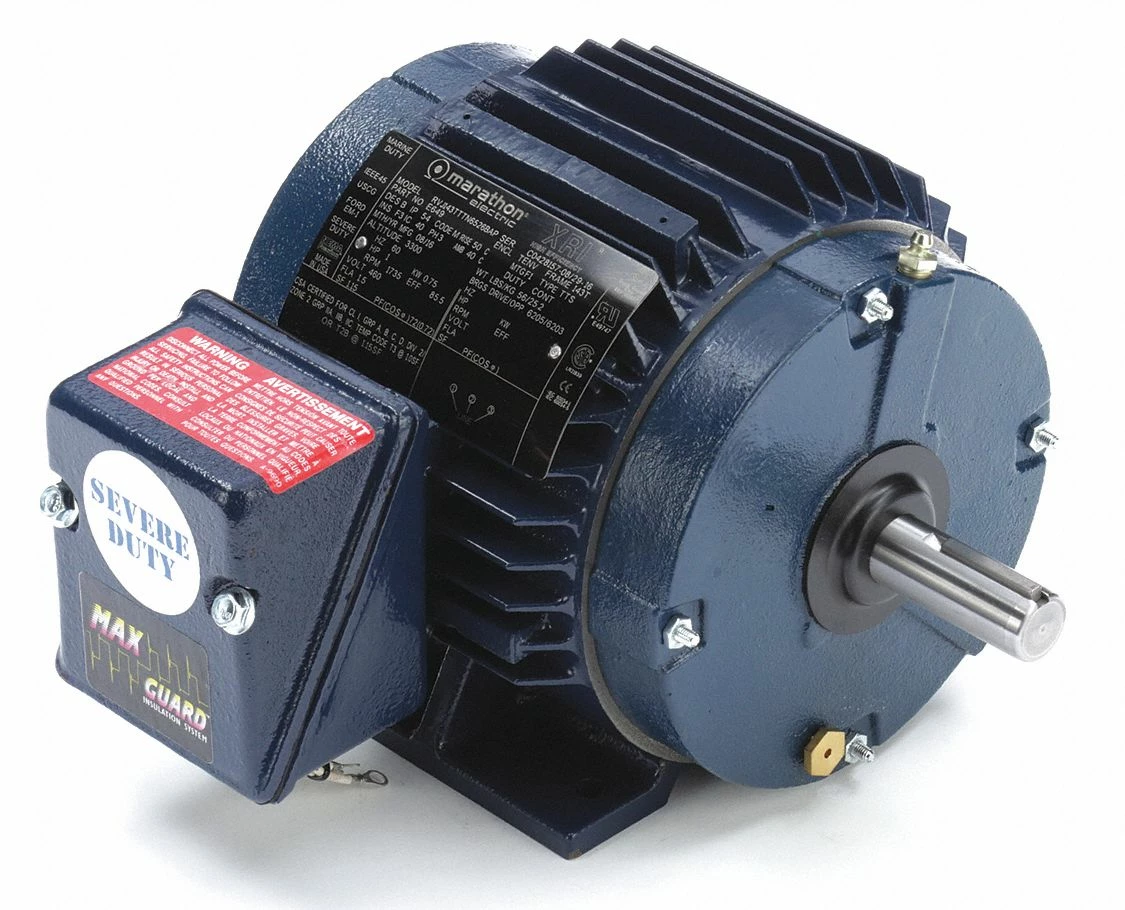 Marathon Motors 1 HP, Severe Duty Motor, 3-Phase, 1735 Nameplate RPM, 230/460 Voltage, 143T Frame – 143TTTN6526