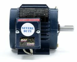 Keep equipment moving in hazardous locations with this severe duty motor. Its 3-phase motor design offers high starting torque, and is suitable for use in industrial environments where 3-phase power is available. It also features a totally enclosed nonventilated enclosure design, which helps resist contamination by preventing air from moving freely between the inside and outside of the frame. The design helps protect the motor from dampness and airborne particles. It resists overheating by radiating excess heat through its finned body design. The cast iron frame offers excellent resistance to wear and holds its shape after impact.