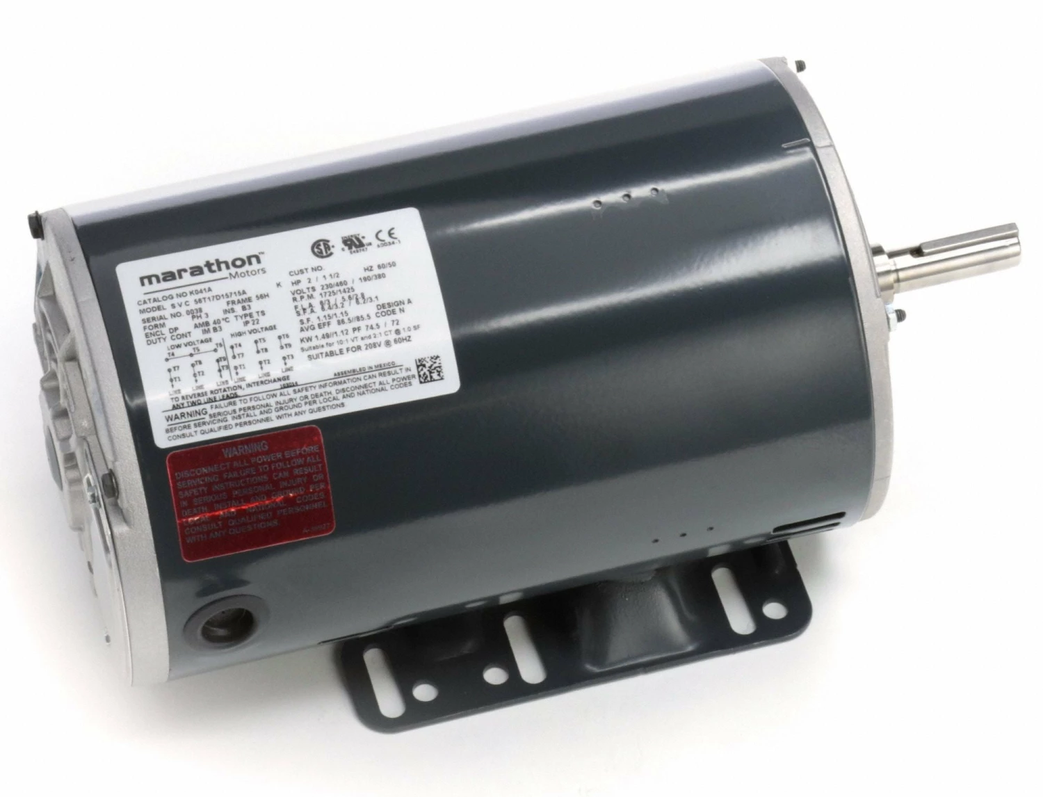 Marathon Motors 2 HP, General Purpose Motor, 3-Phase, 1725 Nameplate RPM, 230/460 Voltage, 56H Frame – 056T17D15715