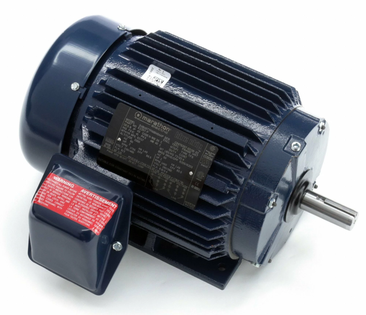 Marathon Motors 2 HP, General Purpose Motor, 3-Phase, 1755 Nameplate RPM, 230/460 Voltage, 145T Frame – 145TTFN16045