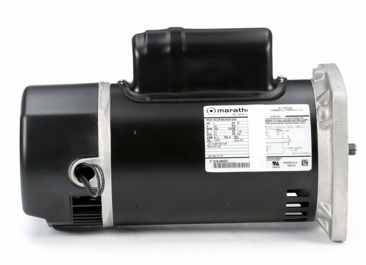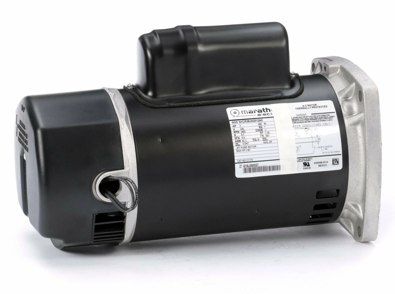Marathon Motors 2 HP Square Flange Pool Pump Motor, Capacitor-Start/Run, 3450 Nameplate RPM, 230 Voltage, 56Y Frame – 5KCR39UN2512X