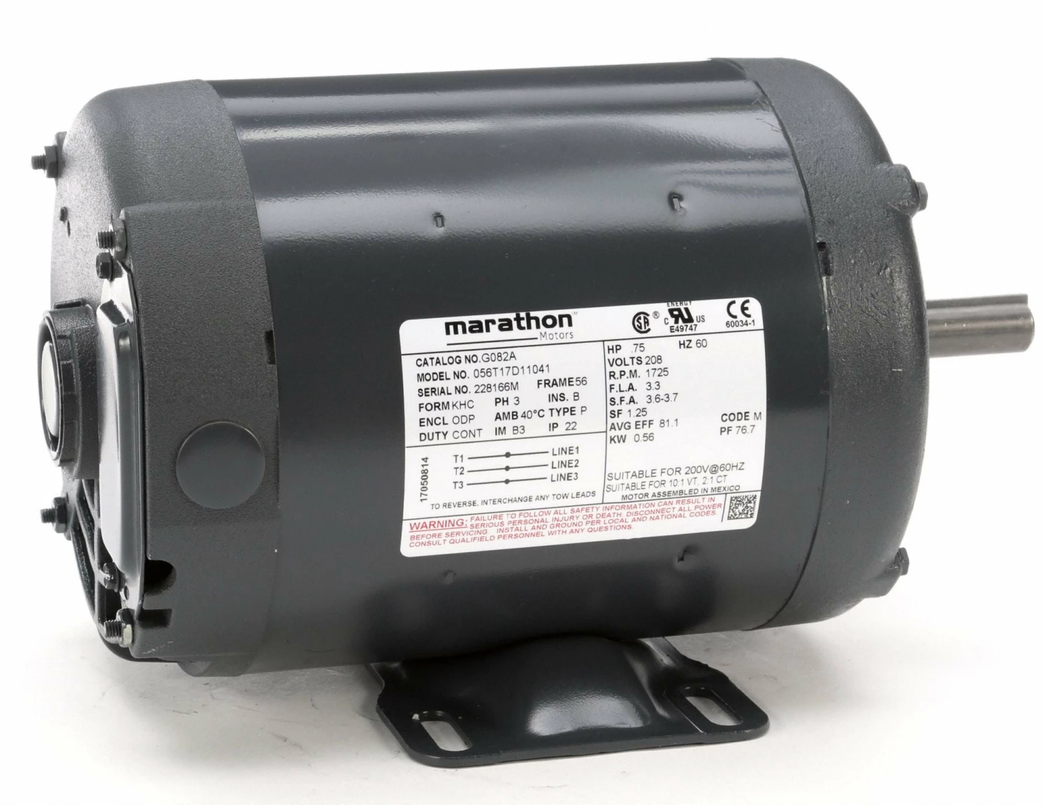 Marathon Motors 3/4 HP, General Purpose Motor, 3-Phase, 1725 Nameplate RPM, 208 Voltage, 56 Frame – 056T17DRR70050A1