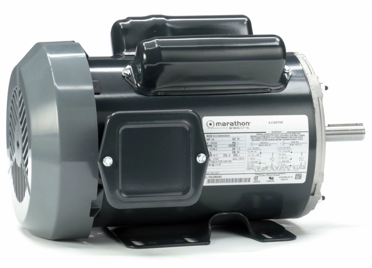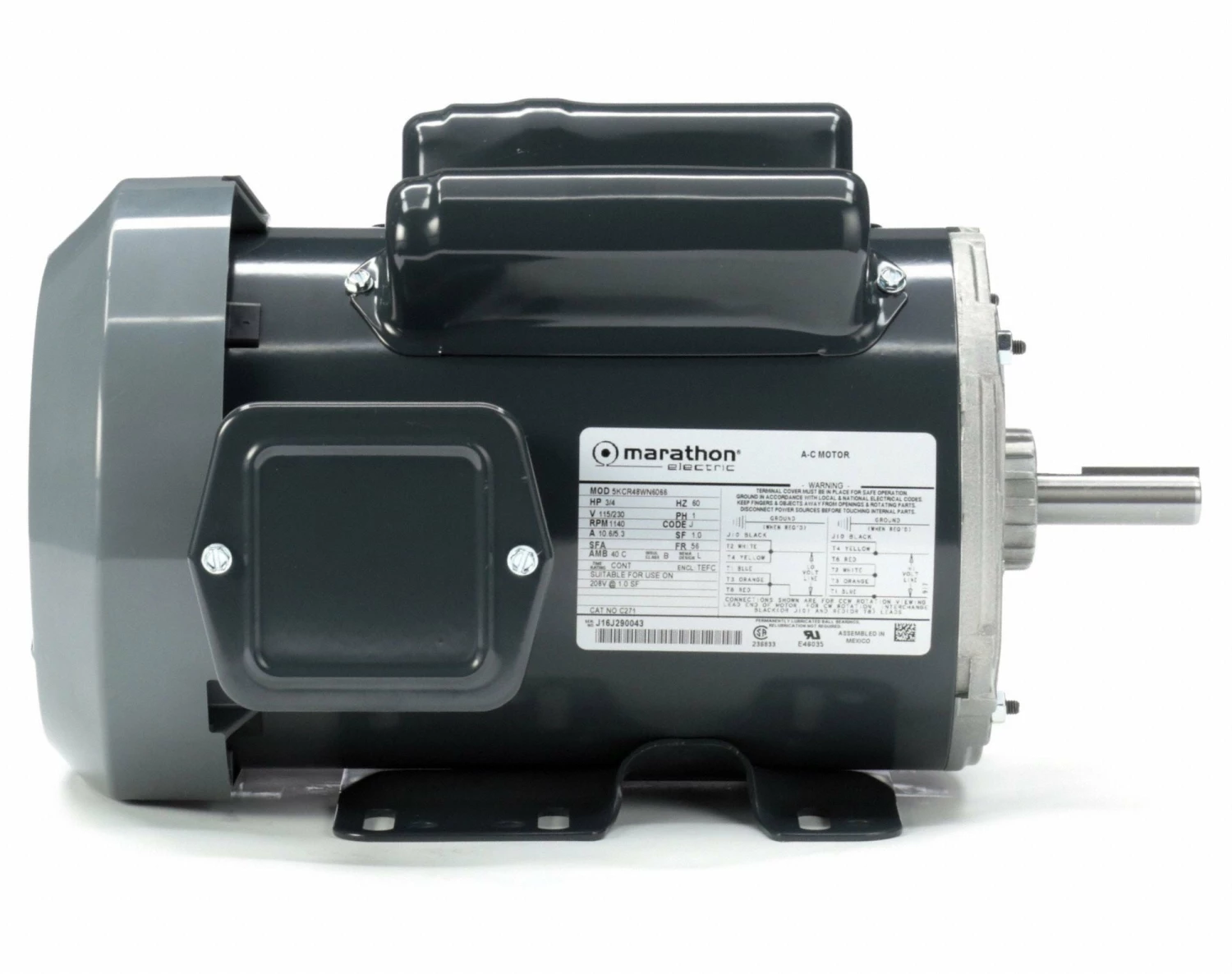 Marathon Motors 3/4 HP, General Purpose Motor, Capacitor-Start/Run, 1140 Nameplate RPM, 115/230 Voltage – 5KCR48WN6066