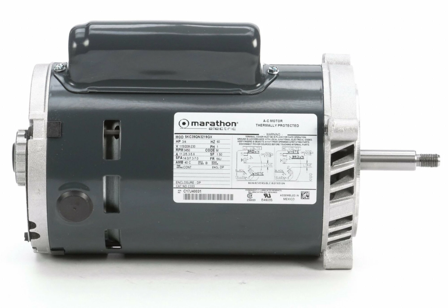 Marathon Motors 3/4 HP Jet Pump Motor, Capacitor-Start, 3450 Nameplate RPM, 115/208-230 Voltage, 56J Frame – 5KC39QN3219X