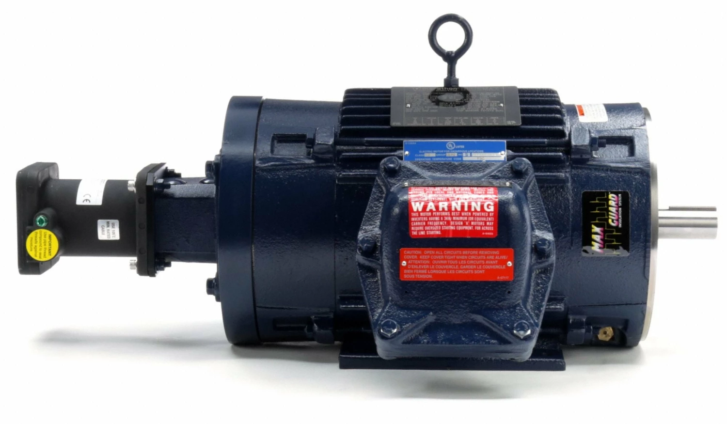 Vector Motor; Motor Application: Crane; Motor Design: 3-Phase; Motor Enclosure Design: Hazardous Location; HP: 3; Nameplate RPM: 1745; Speed Range: 2000:1 CT; Max. Speed: 3,600 RPM; Frame: 182TC; Max. Operating Frequency: 120 Hz; Voltage: 230/460; Hz: 60; Phase: 3; Full Load Amps: 8.2/4.1; Motor Mounting Type: Face/Base; Motor Mounting Position: Horizontal; Motor Shaft Rotation: CW/CCW; Motor Bearings: Ball; Motor Service Factor: 1; Motor Thermal Protection: T-Stat; Ins. Class: F; Insulation Feature: Max Guard; Ambient Temperature: 40 Degrees C; Nominal Efficiency: 86.5 %; Motor Efficiency Group: Standard Efficient; NEMA Design: A; Motor Frame Material: Cast Iron; Finish: Blue; Base: Rigid; Duty: Continuous; Encoder Acceptable: Yes; Encoder Shaft: 5/8 in; Motor Shaft Design: Keyed; Shaft Dia.: 1 1/8 in; Shaft Length: 2 5/8 in; Overall Length: 24 13/16 in; Standards: UL LISTED(E12044); CSA CERTIFIED (LR47504); CL I GR C&D; CL II GR F&G; Warranty: 3 yr; RPM Range: 1701-1800; Voltage Compatibility: 220-230/460, 230/460, 460