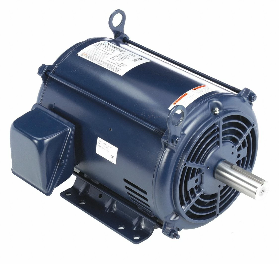 Keep equipment moving with this continuous-duty belt drive motor, which is designed to run continuously for an extended time period without overheating. The 3-phase motor design offers high starting torque, and is suitable for use in industrial environments where 3-phase power is available. It also features an open dripproof enclosure design, which is engineered to permit good airflow while resisting the ingress of dripping water. The vents are angled to prevent water from entering the enclosure from above. The motor’s shaft also turns a cooling fan to help pull air through the motor. Its rolled steel frame is durable and ductile, and is able to resist fracturing upon impact.