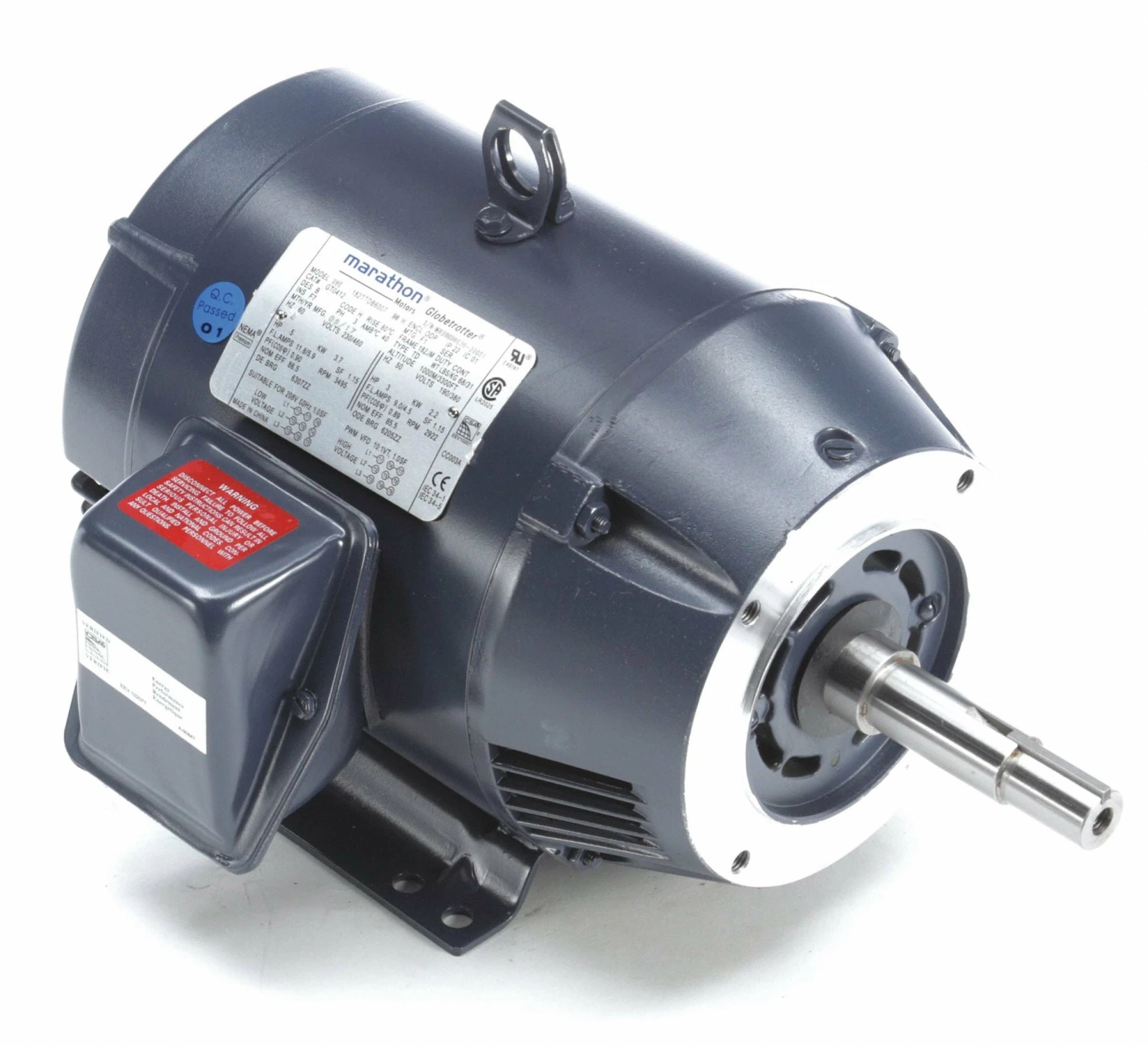 The Marathon Motors close-coupled pump motor is a 3-phase continuous-duty motor for use in commercial and industrial pumping applications. This TEFC motor is suitable for use in dirty, dusty, and nonhazardous applications., JM threaded,Open dripproof