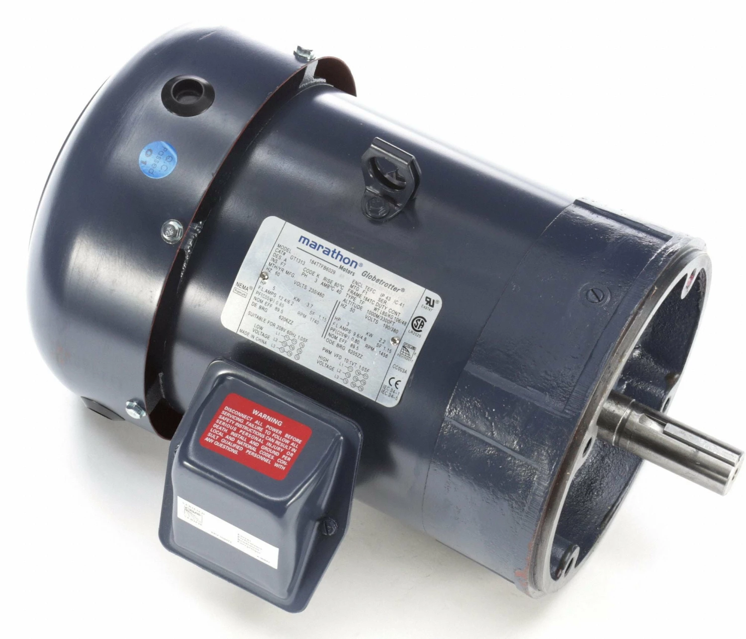 Marathon Motors 5 HP, General Purpose Motor, 3-Phase, 1740 Nameplate RPM, 230/460 Voltage, 184TC Frame – 184TTFBD6029