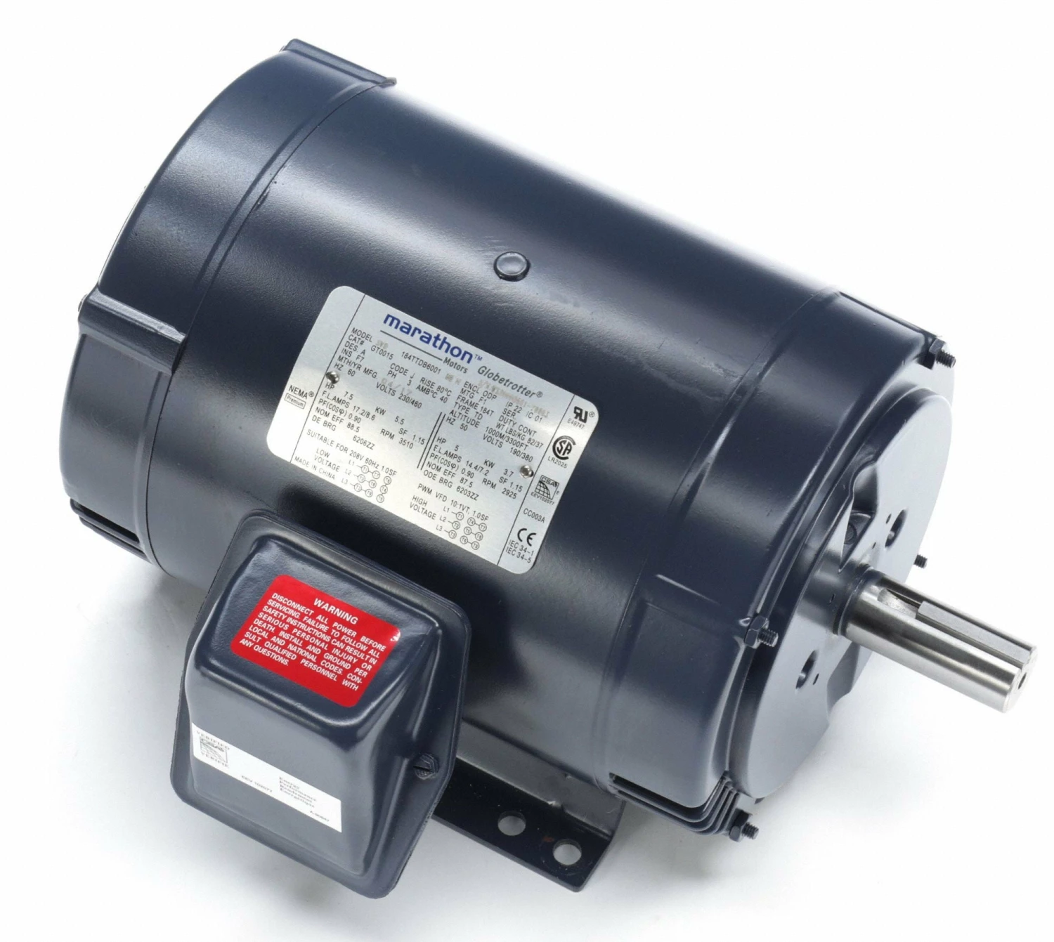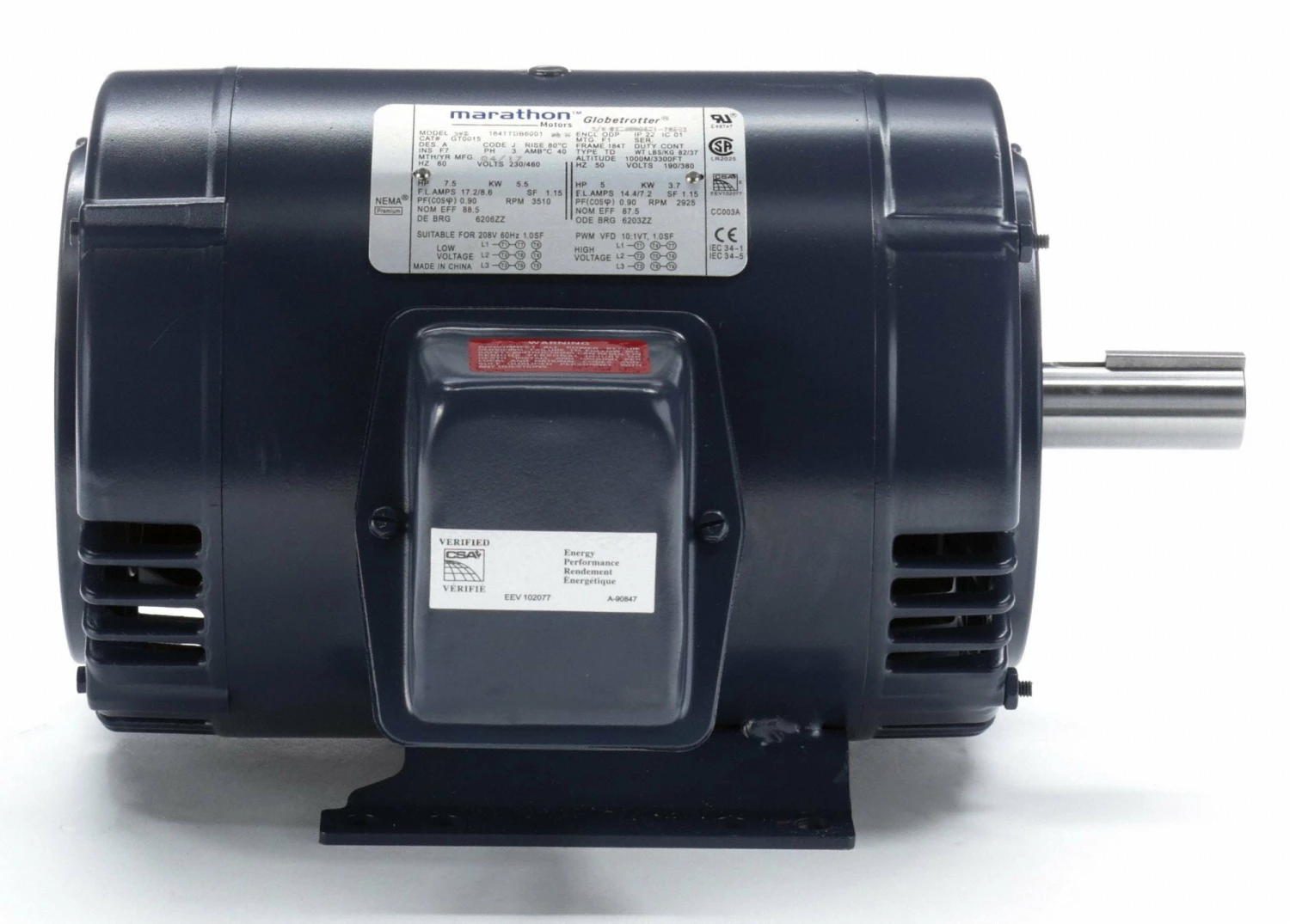 Marathon Motors 7 1/2 HP, General Purpose Motor, 3-Phase, 3510 Nameplate RPM, 230/460 Voltage, 184T Frame – 184TTDBD6001