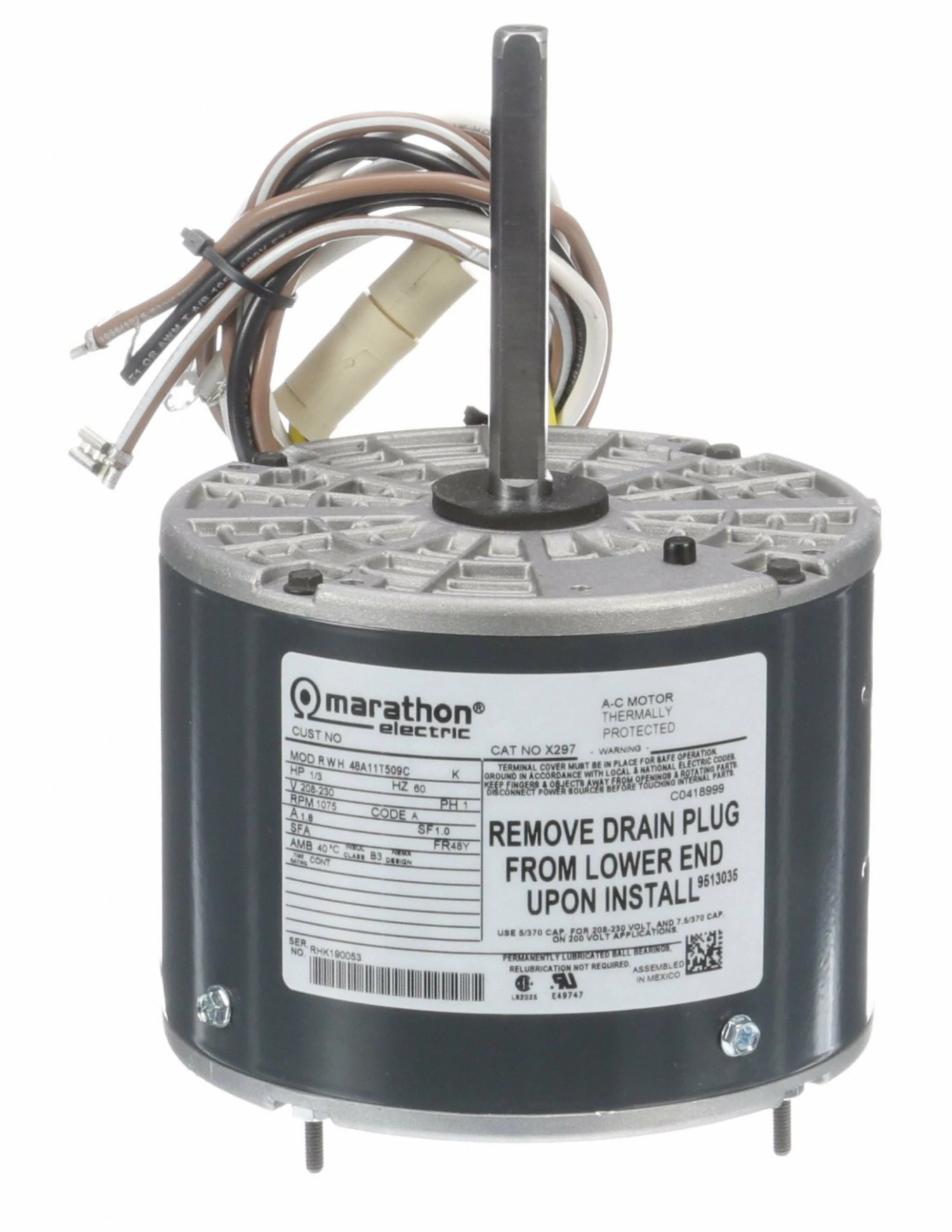 Marathon Motors Cond Fan Mtr, PSC, TEAO, 1/3HP, 1Ph, 1075 Rpm – 048A11T509